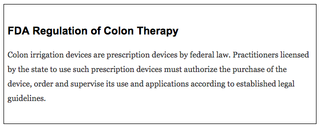 FDA Regulation of Colon Irrigation
